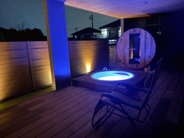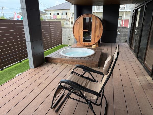 テラスのバレルサウナの近くに設置され、リラックスできる空間となっております。